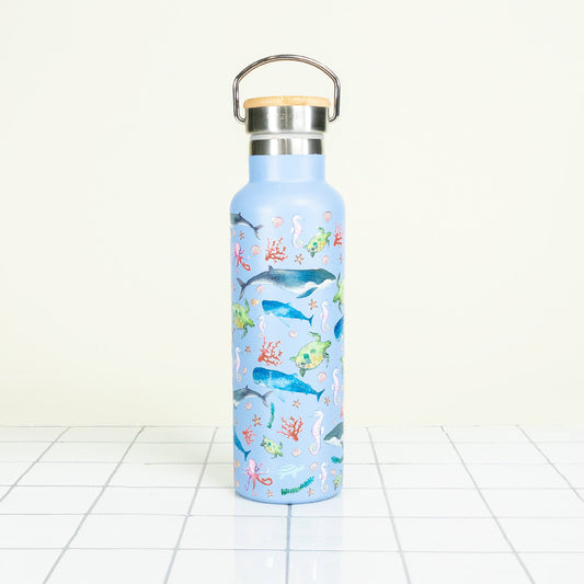 Double Wall Insulated Water Bottle - With Handle & Bamboo Lid